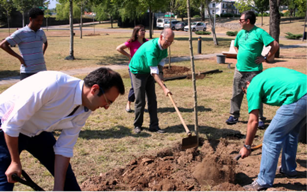 The amount of CO2 equivalent estimated for the local organization of IEEE-VPPC 2014 was calculated and the plantation of new trees in Parque Verde-Coimbra took place in June, 3, 2015 as a local mitigation action.