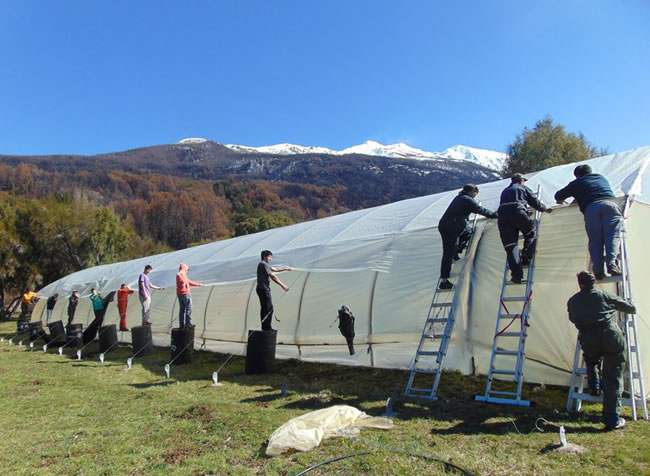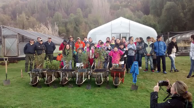 Villa Futalaufquen primary school students and National Park staff at nursery (left) Students with EPE’13, VPPC 2014 and VPPC’10 T-shirts (center) and the new nursery from VPPC2014 (right)
